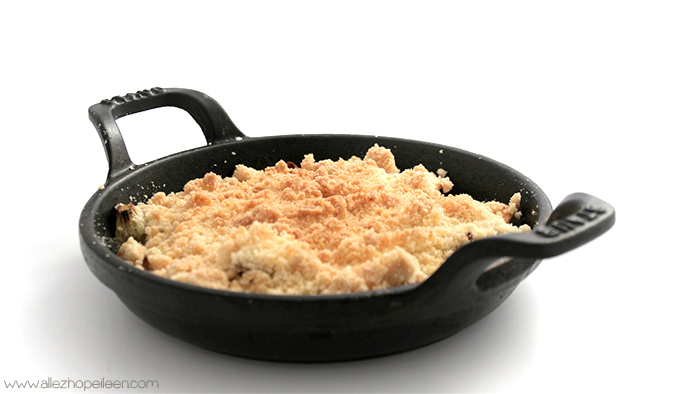 La douceur de la pomme mélangée à l’acidité de la rhubarbe sous sa couverture de crumble sucrée. Un véritable délice !!
